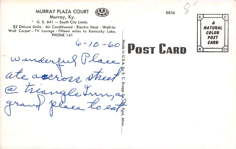 Murray Kentucky Plaza Court Street View Vintage Postcard K41742