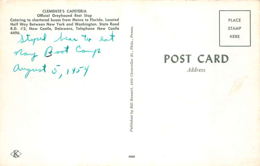 New Castle Delaware Clemente’s Cafeteria Greyhound Bus Station Postcard AA74070