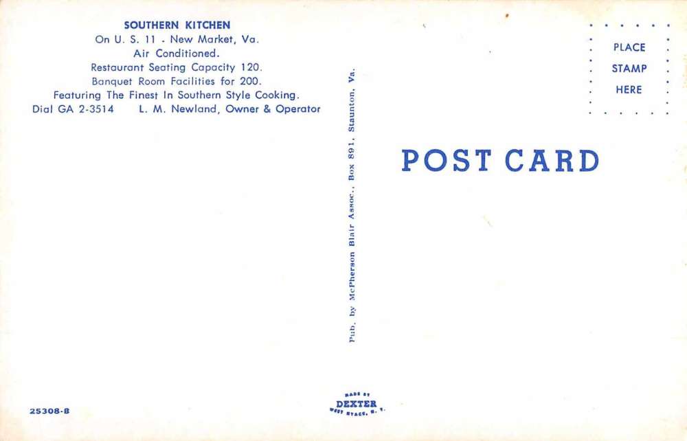 New Market Virginia Southern Kitchen Restaurant Vintage Postcard JE359218