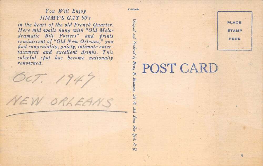 New Orleans Louisiana Jimmys Gay 90s Vintage Postcard AA84946