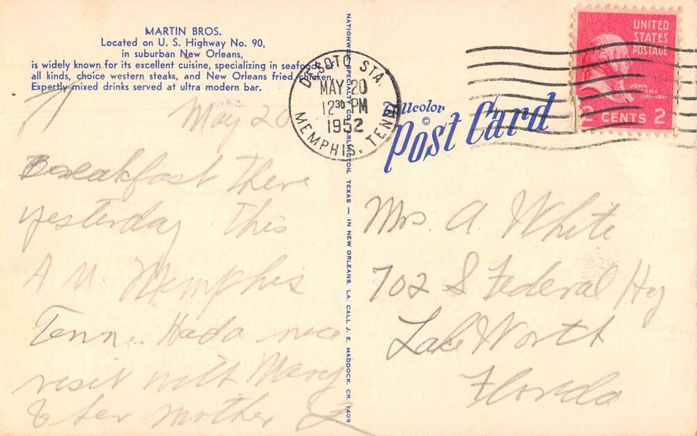 New Orleans Louisiana Martin Bros Restaurant Vintage Postcard AA39784
