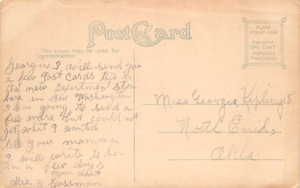 New Washington Ohio The Miller Merchandise Co., Vintage Postcard U26970
