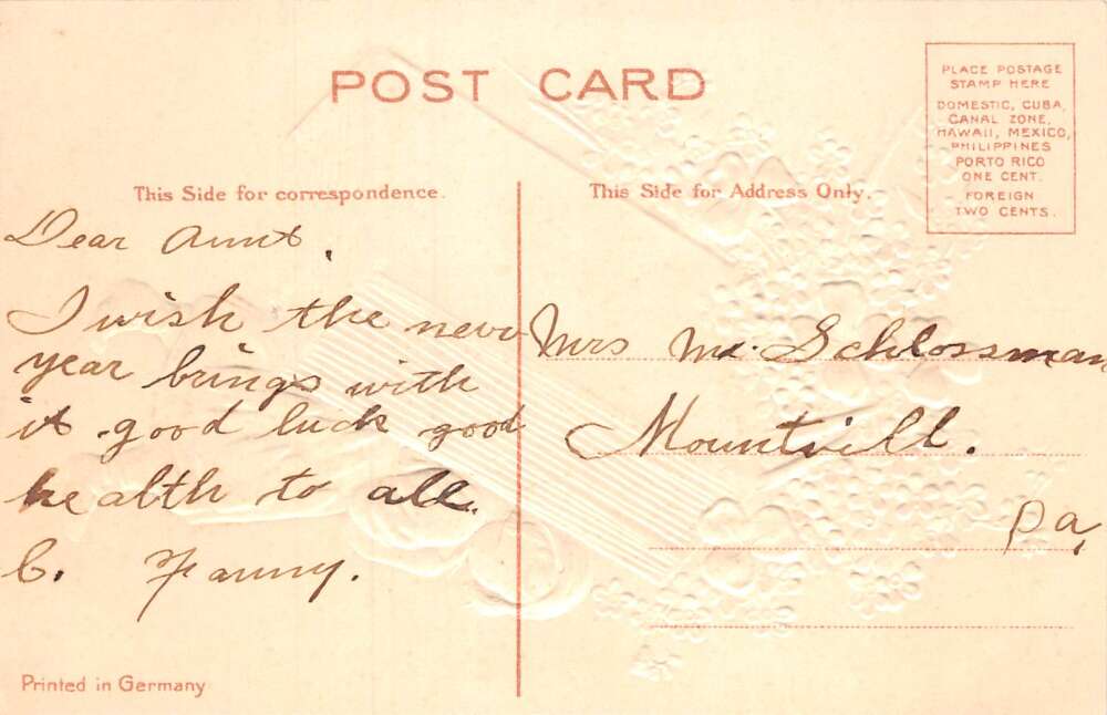 New Year Greetings Girl Carrying Date Sign and Flowers Vintage Postcard AA72168