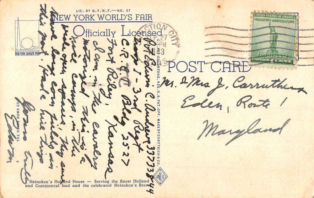 New York City New York Worlds Fair Holland House Antique Postcard K87126