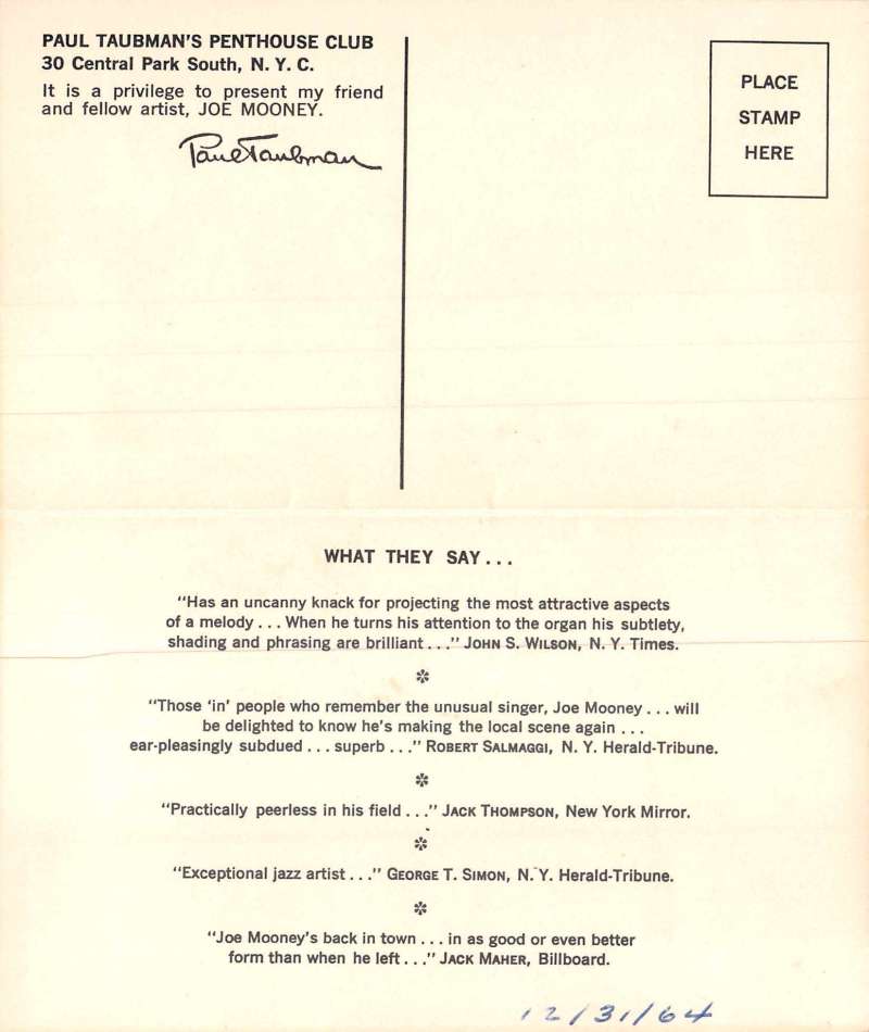 New York City Paul Taubman’s Penthouse Club Advertising Bi-Fold Postcard J69422