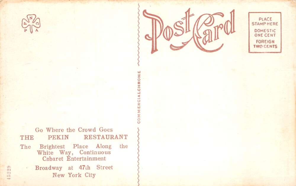 New York City Pekin Restaurant Dining Room Vintage Postcard AA105395