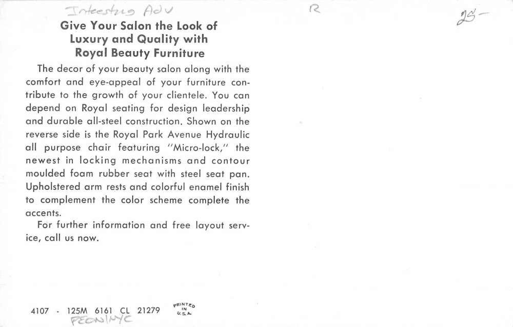 New York City Royal Beauty Furniture Salon Interior Vintage Postcard K84592