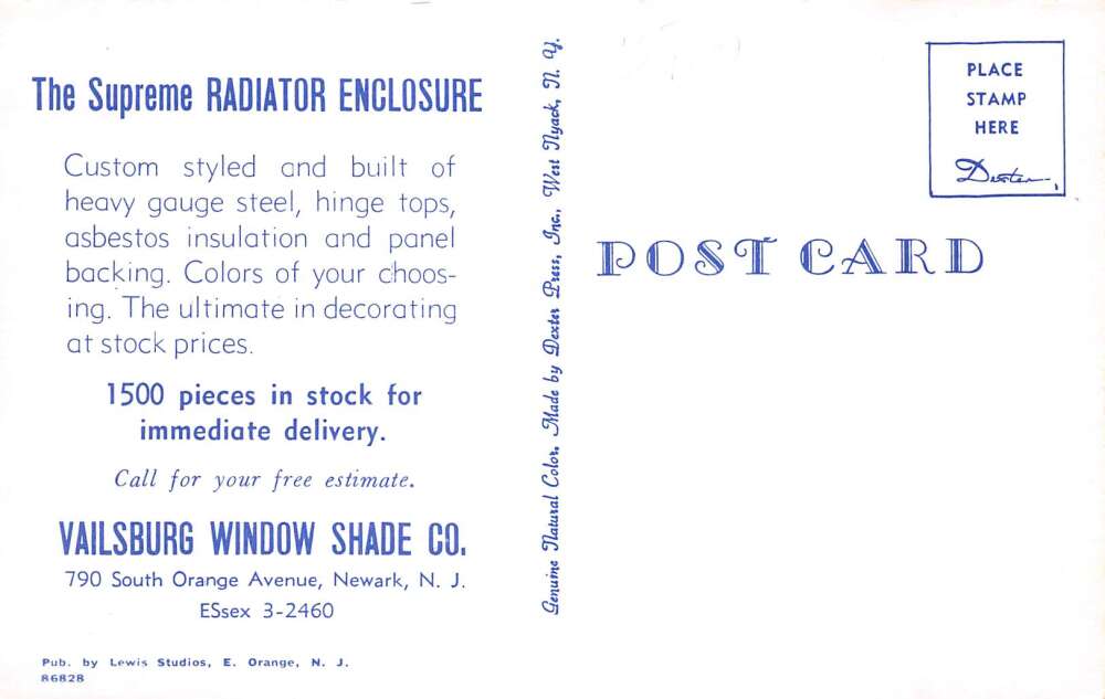 Newark New Jersey Vailsburg Window Shade Co Radiator Cover Ad Postcard AA79967