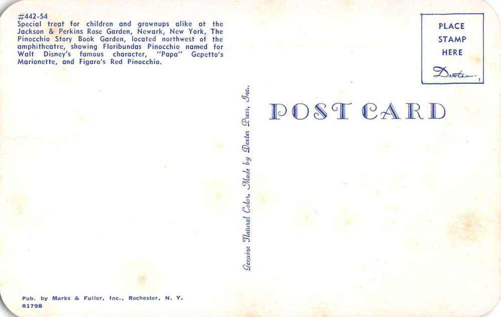 Newark New York Jackson and Perkins Rose Garden Pinocchio Postcard J65784