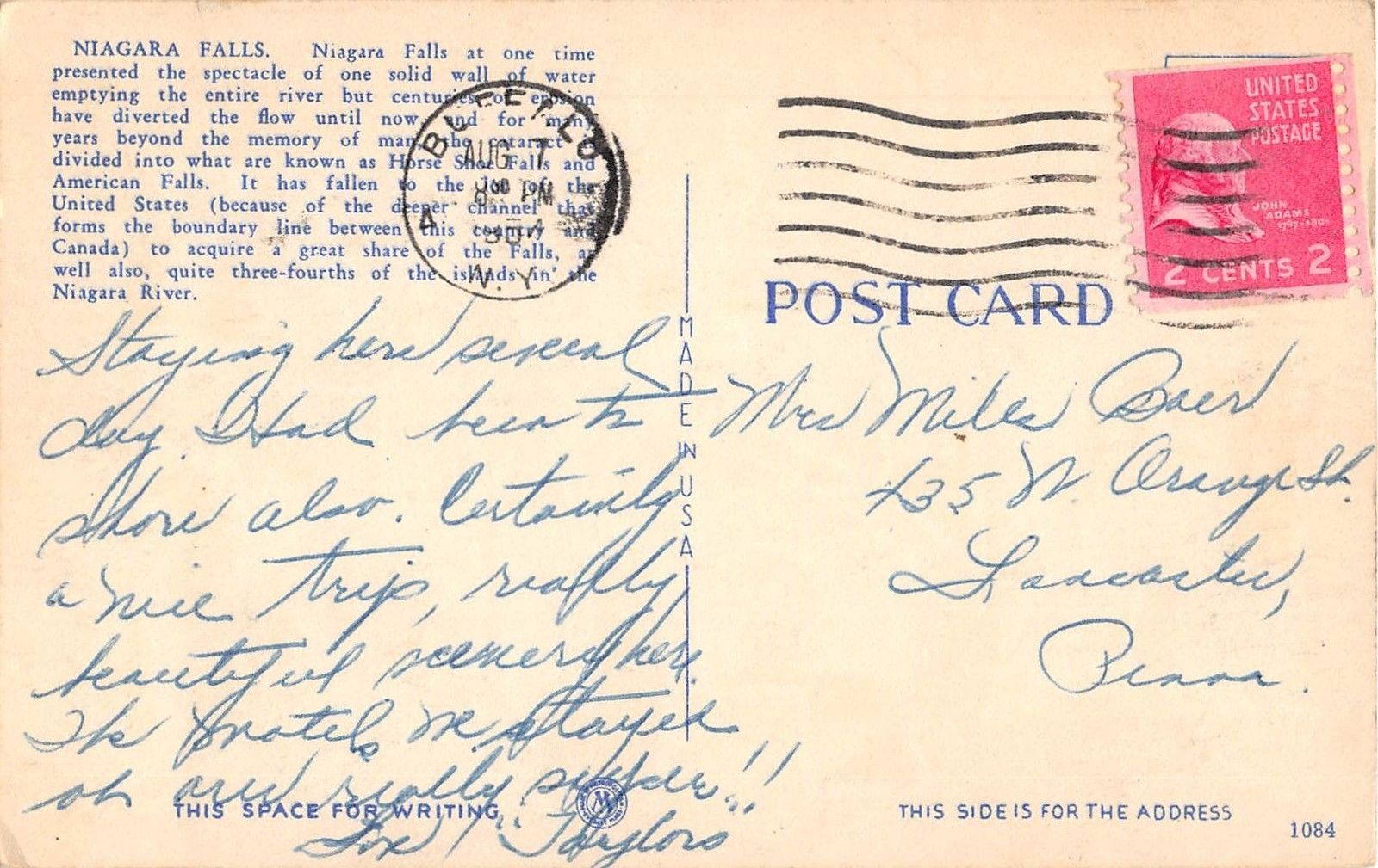 Niagara Falls New York Greetings Large Letter Antique Postcard (J15125) Good Condition.