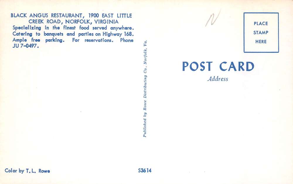 Norfolk Virginia Black Angus Restaurant Vintage Postcard AA73771