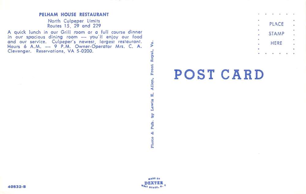 North Culpeper Virginia Pelham House Restaurant, Multi-View Chrome, PC U16564
