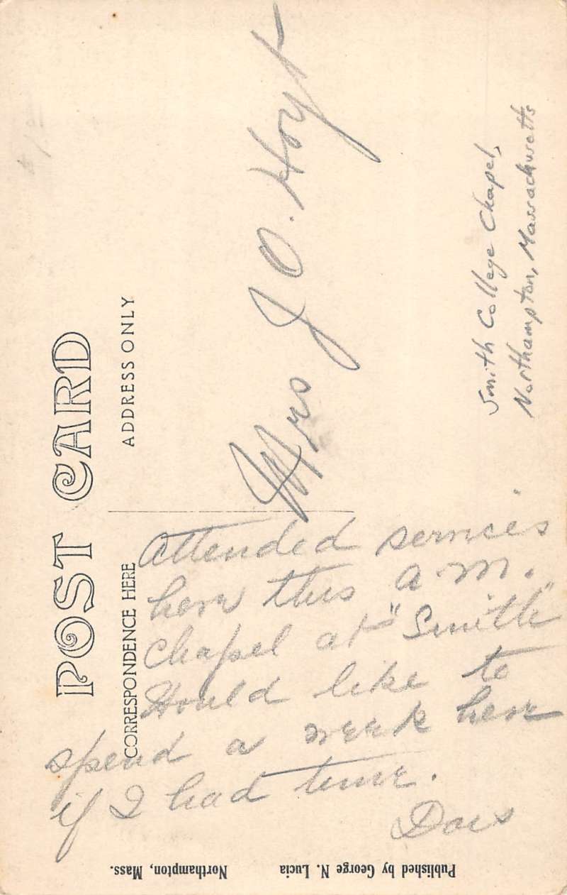 Northampton Massachusetts College Chapel Real Photo Antique Postcard K55661