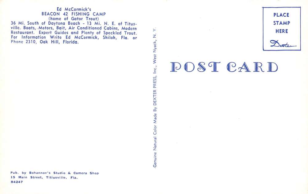 Oak Hill Florida Beacon 42 Fishing Camp, Chrome Vintage Postcard U26542