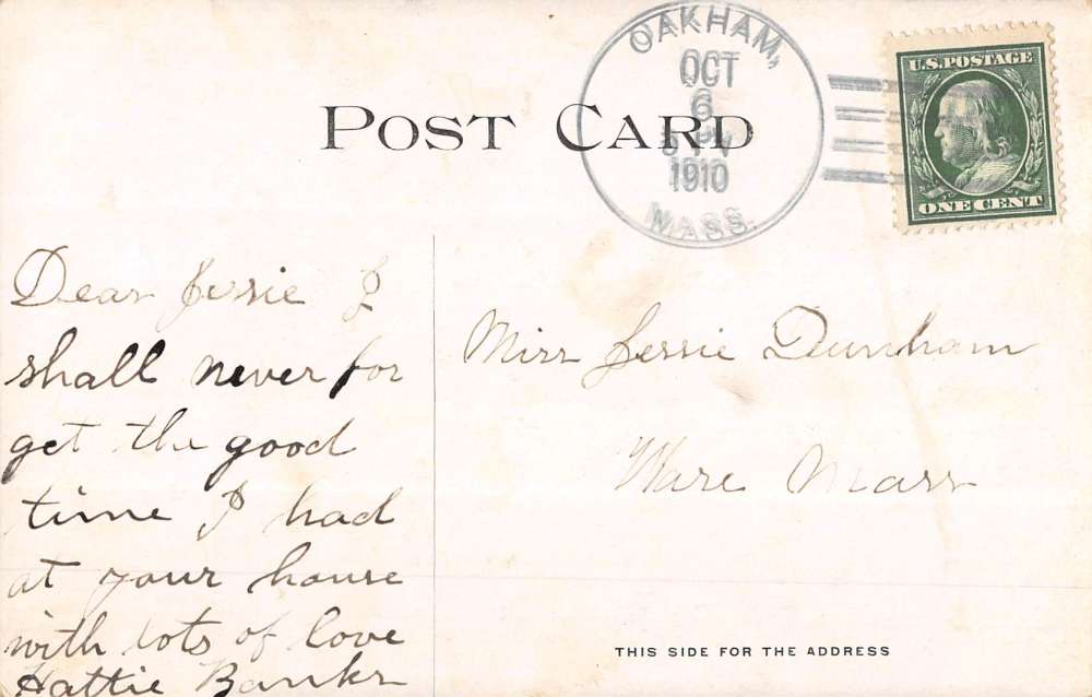 Oakham Massachusetts Fobes Memorial Library Street View Antique Postcard K56173