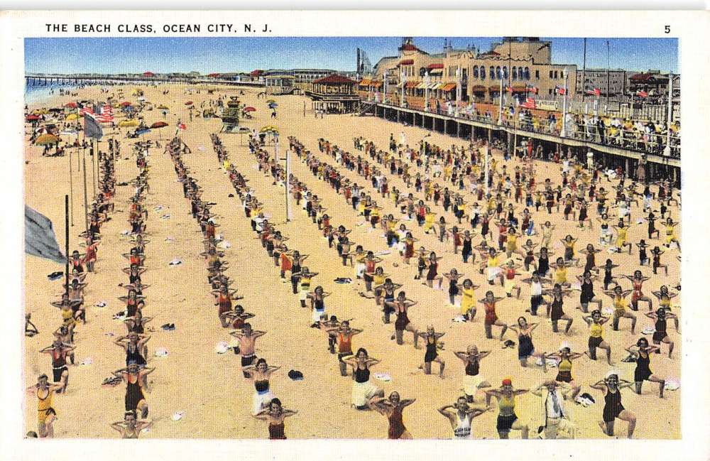 Ocean City New Jersey Beach Exercise Class Antique Postcard K70080