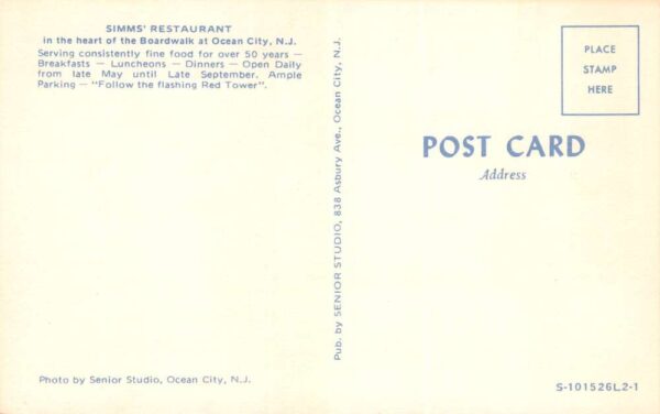 Ocean City New Jersey Simms’ Restaurant, Multi-View Chrome Vintage PC U10075