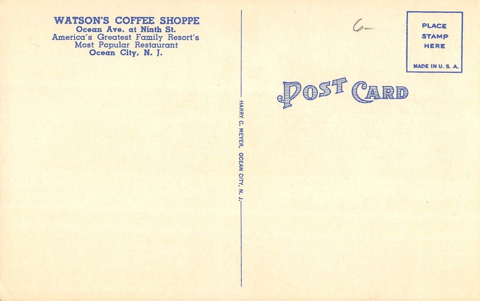 Oean City New Jersey view of Watson’s Coffee House linen antique pc (Z10779). Good condition – has not been used.