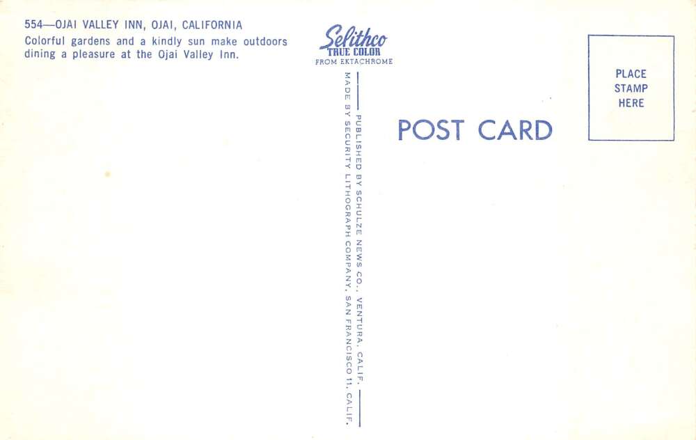 Ojai California Ojai Valley Inn Outdoor Dining Vintage Postcard AA107547
