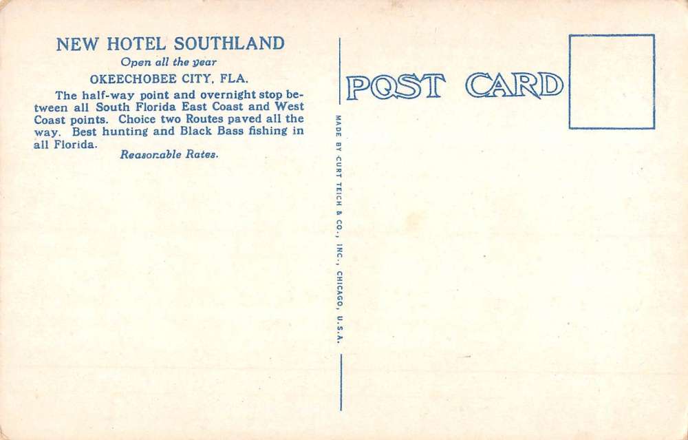 Okeechobee City Florida Hotel Southland Street View Antique Postcard K107198