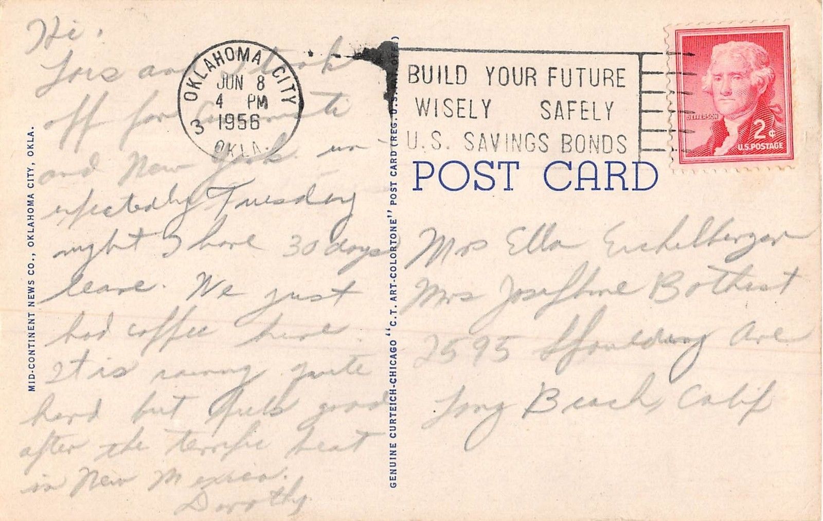 Oklahoma city Oklahoma Large Letter Linen Postcard (T114). Good Condition.
