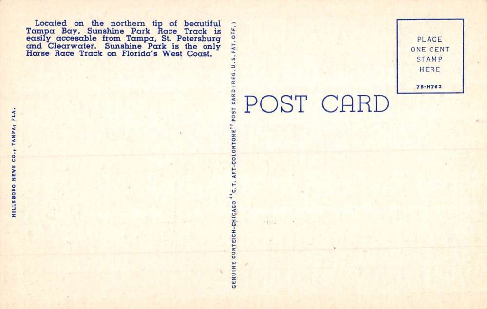 Oldsmar Florida Horse Racing Sunshine Park Antique Postcard K91117
