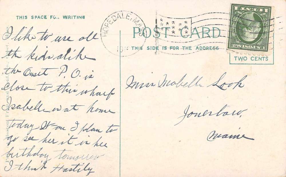 Onset Massachusetts birds eye view Onset Bay and Wharf antique pc Z42037