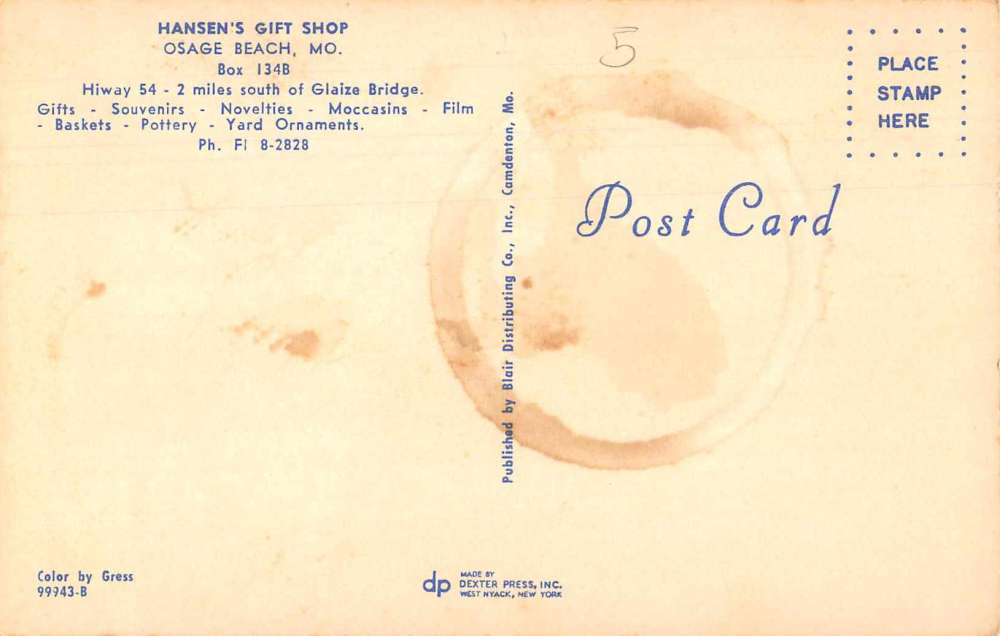 Osage Beach Missouri Hansen’s Gift Shop Vintage Postcard AA9694