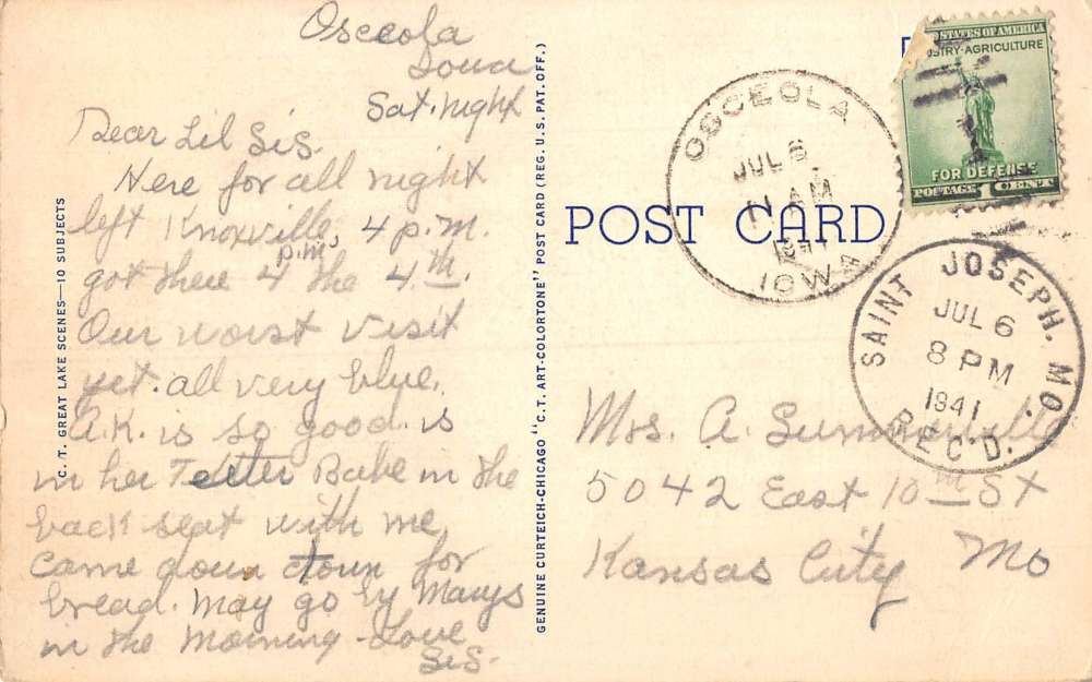 Osceola Iowa Scenic Waterfront Greeting Antique Postcard K107218