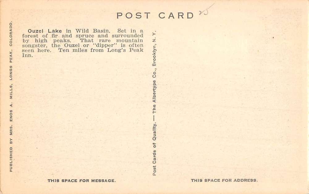 Ouzel Lake Colorado Wild Basin Waterfront Antique Postcard K84580