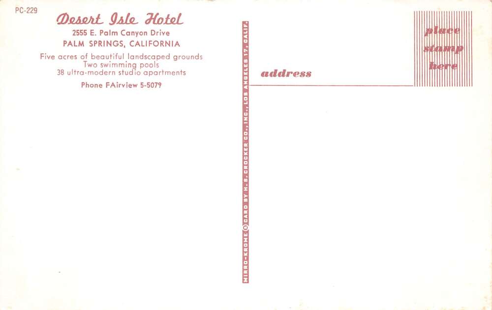Palm Springs California Desert Isle Hotel Swimming Pool Postcard AA111336