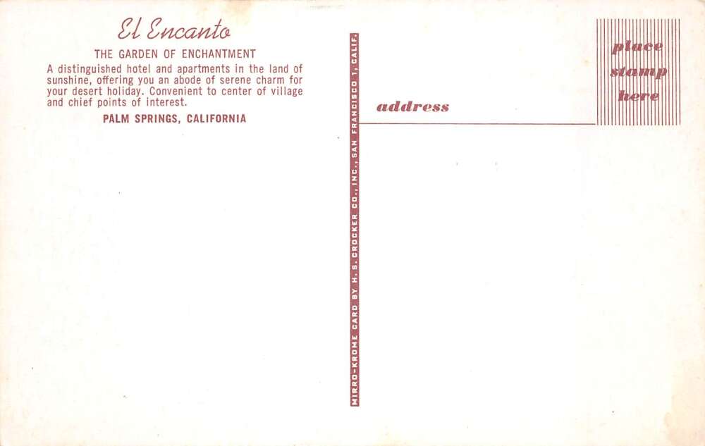 Palm Springs California El Encanto Hotel Swimming Pool Vintage Postcard AA111335