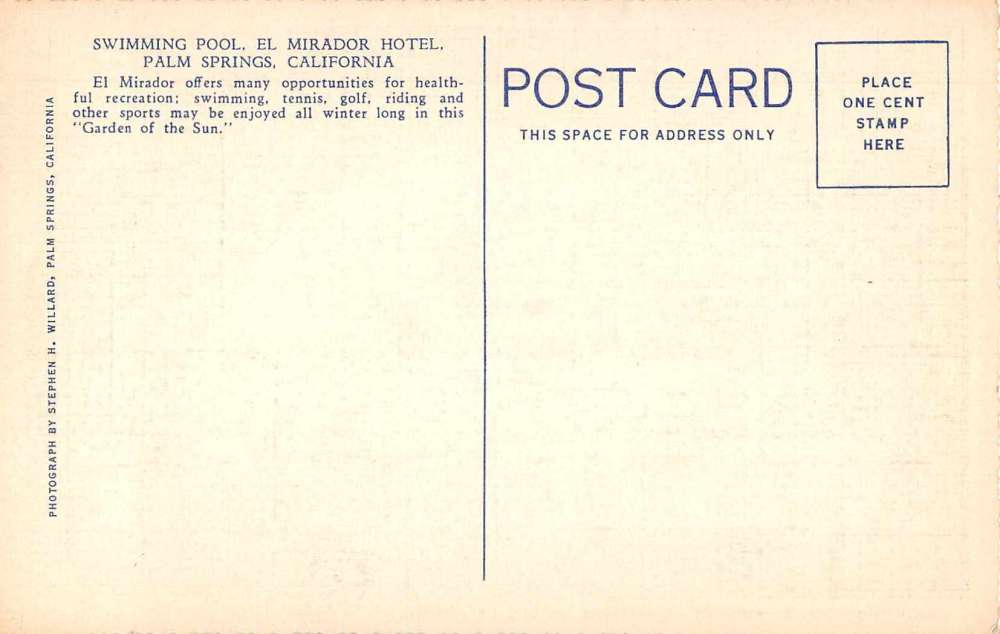 Palm Springs California El Mirador Hotel Swimming Pool Antique Postcard J52890