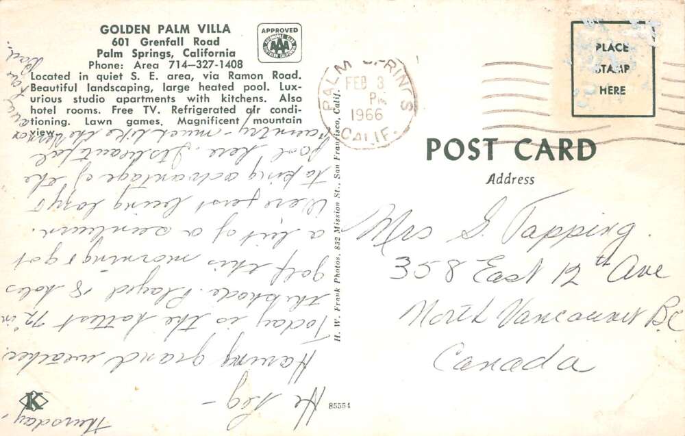 Palm Springs California Golden Palm Villa Vintage Postcard AA104354