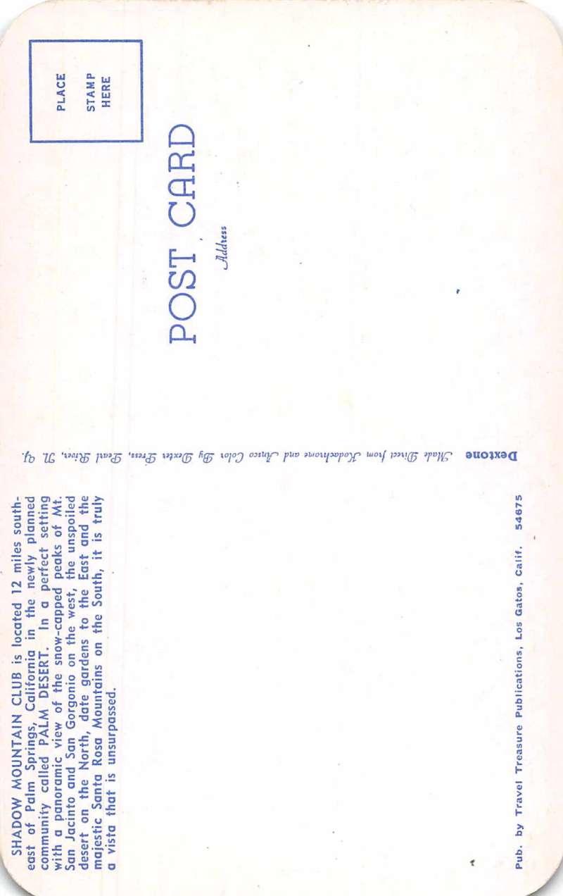 Palm Springs California pool scene Shadow Mountain Club vintage pc Z46068