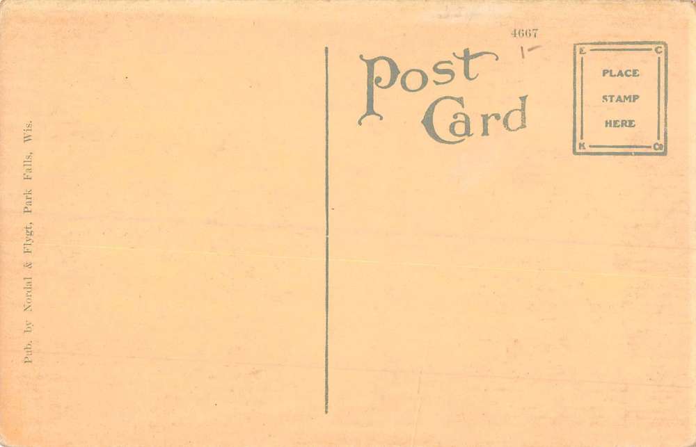 Park Falls Wisconsin Flambeau River Waterfront Antique Postcard K81694