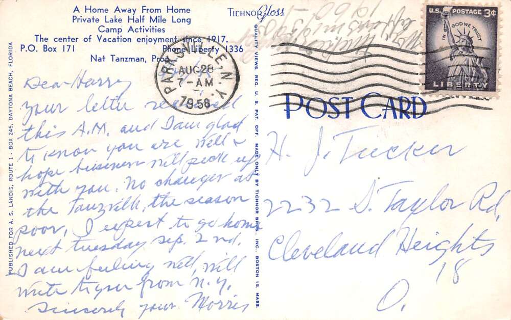 Parksville New Jersey The Tanzville Vintage Postcard AA111040
