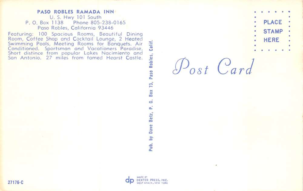 Paso Robles California Ramada Inn, Photochrome, Vintage Postcard U16552