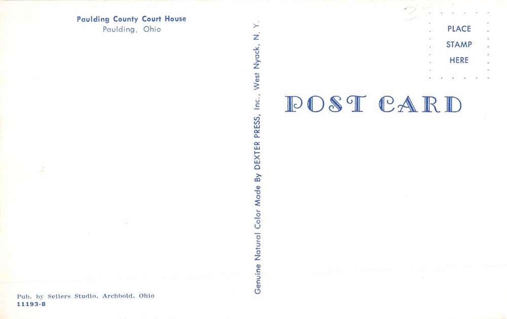 Paulding Ohio Court House Street View Vintage Postcard K54078