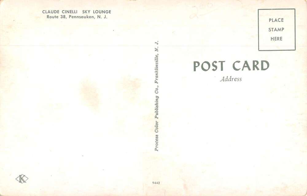 Pennsauken New Jersey Claude Cinelli Sky Lounge Vintage Postcard AA17824