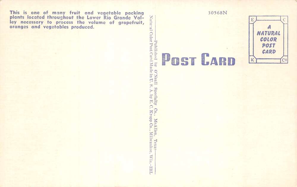 Pharr Texas Valley Fruit Co Packing Plant Vintage Postcard AA112005