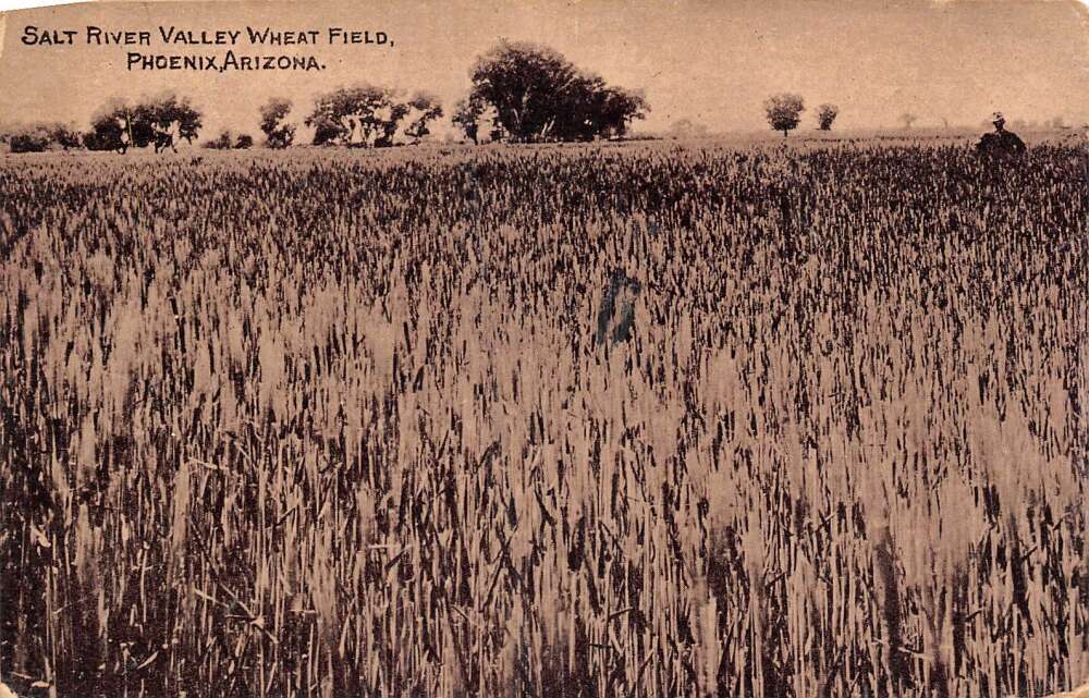 Phoenix Arizona Salt River Valley Wheat Field, B/W Lithograph Vintage PC U16820