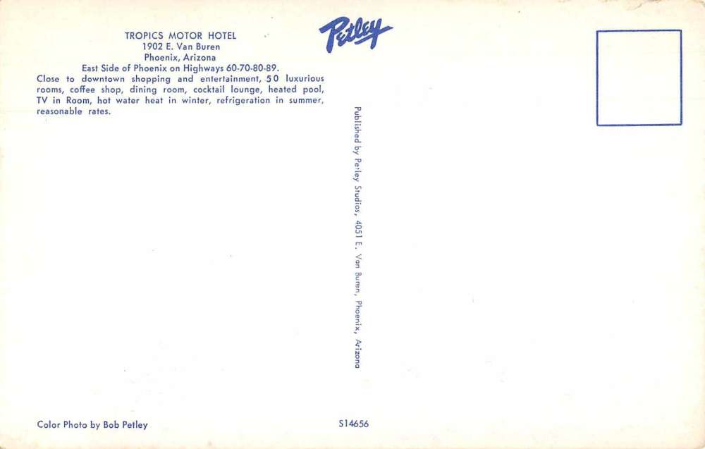 Phoenix Arizona Tropics Motor Hotel Vintage Postcard JF360203
