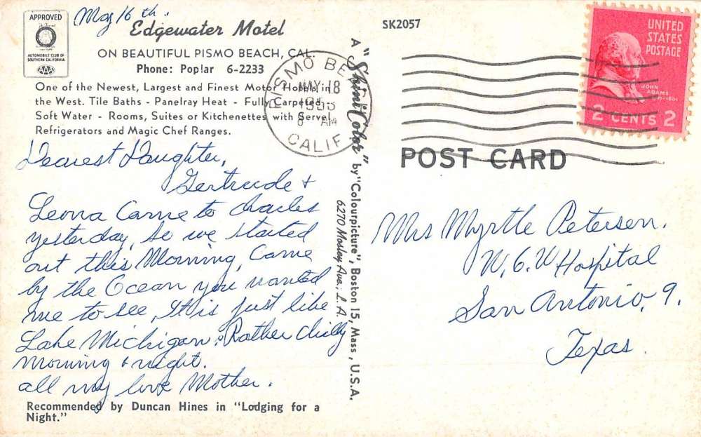 Pismo Beach California Edgewater Motel Waterfront Vintage Postcard K79729