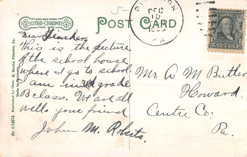 Pitcairn Pennsylvania Public School Street View Antique Postcard K89253