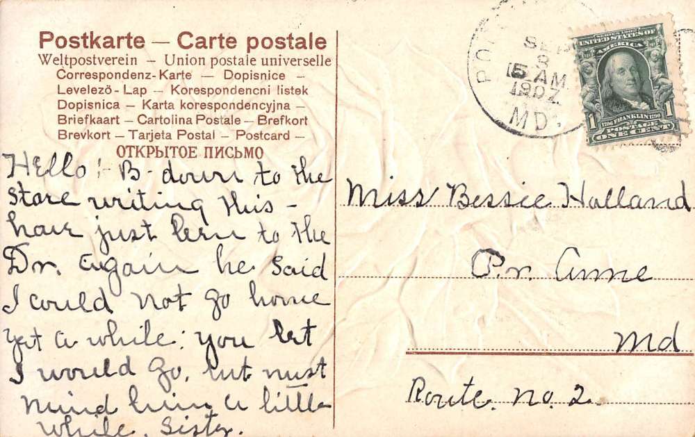 Pocomoke City Maryland Rose Flower Greeting Antique Postcard K65604