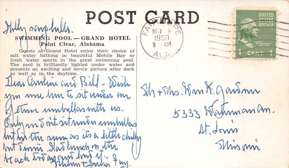 Point Clear Alabama Grand Hotel Swimming Pool Vintage Postcard AA104358
