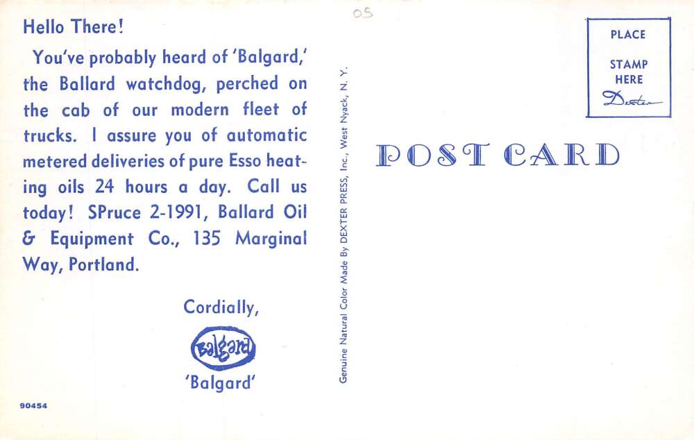 Portland Maine Balgard Esso Heating Oils Oil Delivery Truck Postcard AA72489