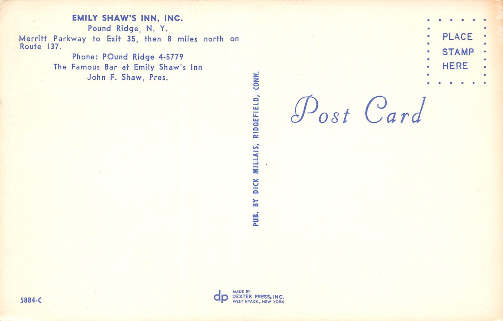 Pound Ridge New York Emily Shaw’s Inn, Photochrome Vintage Postcard U11830