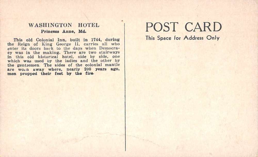 Princess Anne Maryland Washington Hotel Exterior Vintage Postcard AA1714